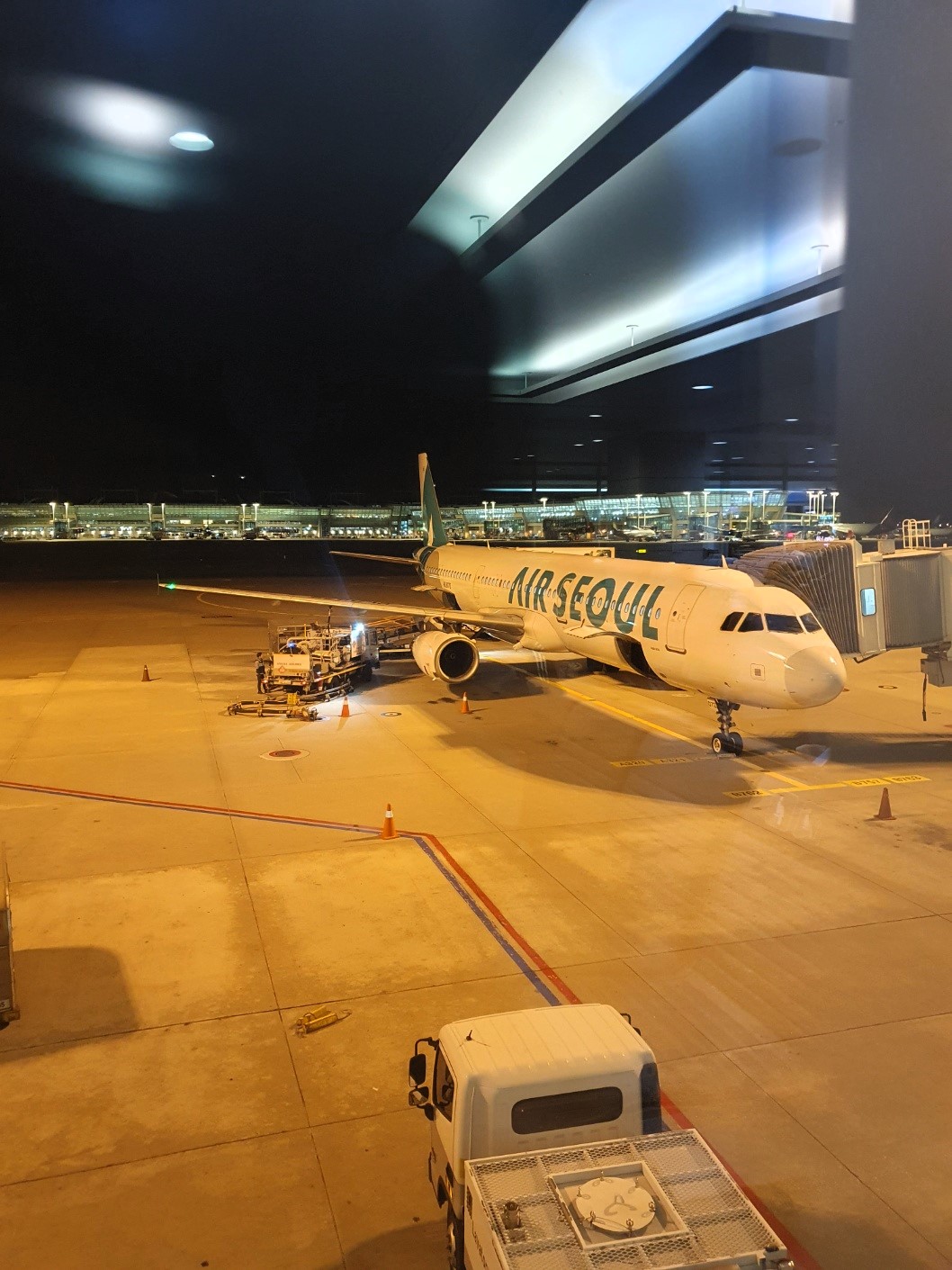 (**** 저는 에어 서울 비행기를 타고 갔는데