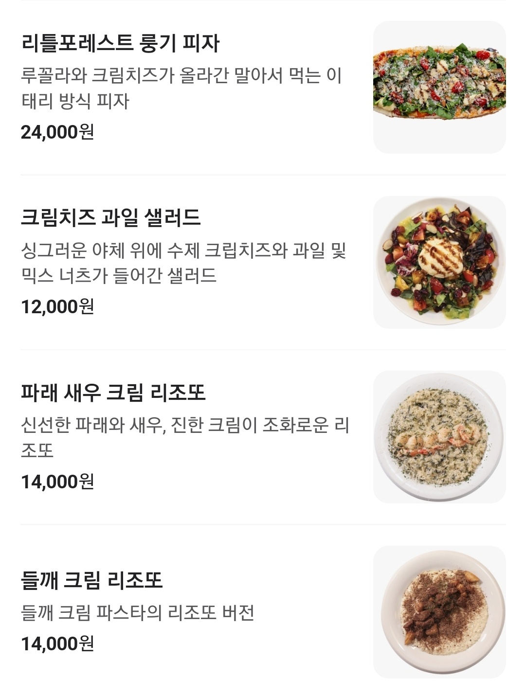 세컨디포레스트 의 메뉴 입니다.