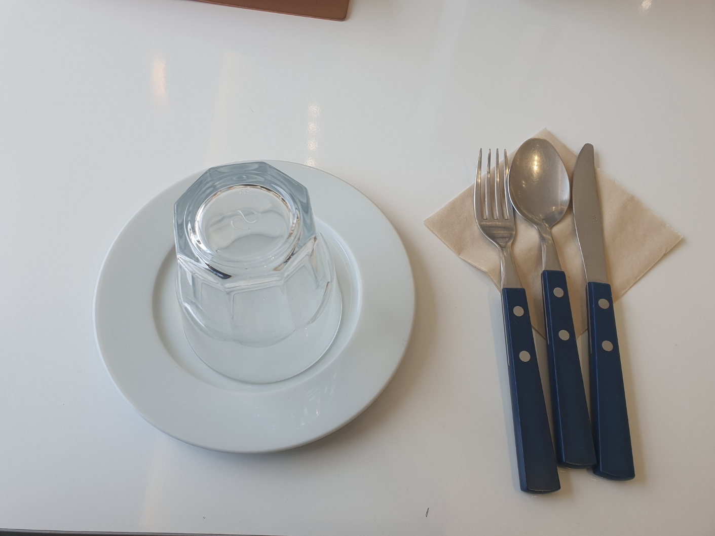 테이블 에 접시와 물컵