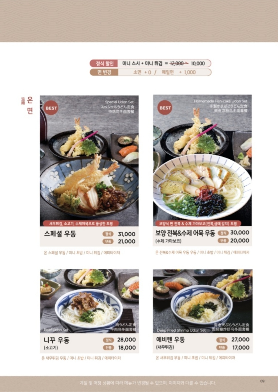 (우동에서 메밀로 변경시에는 1,000원이 추가 됩니다.)