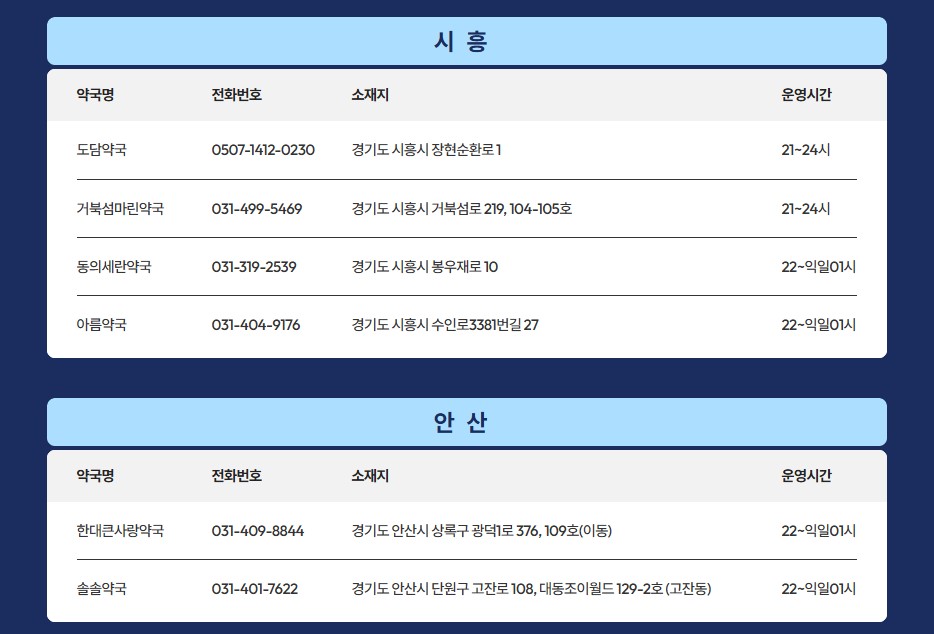 야간 심야에도 경기도 공공심야약국이 문 엽니다(부천,광명,시흥,안산)