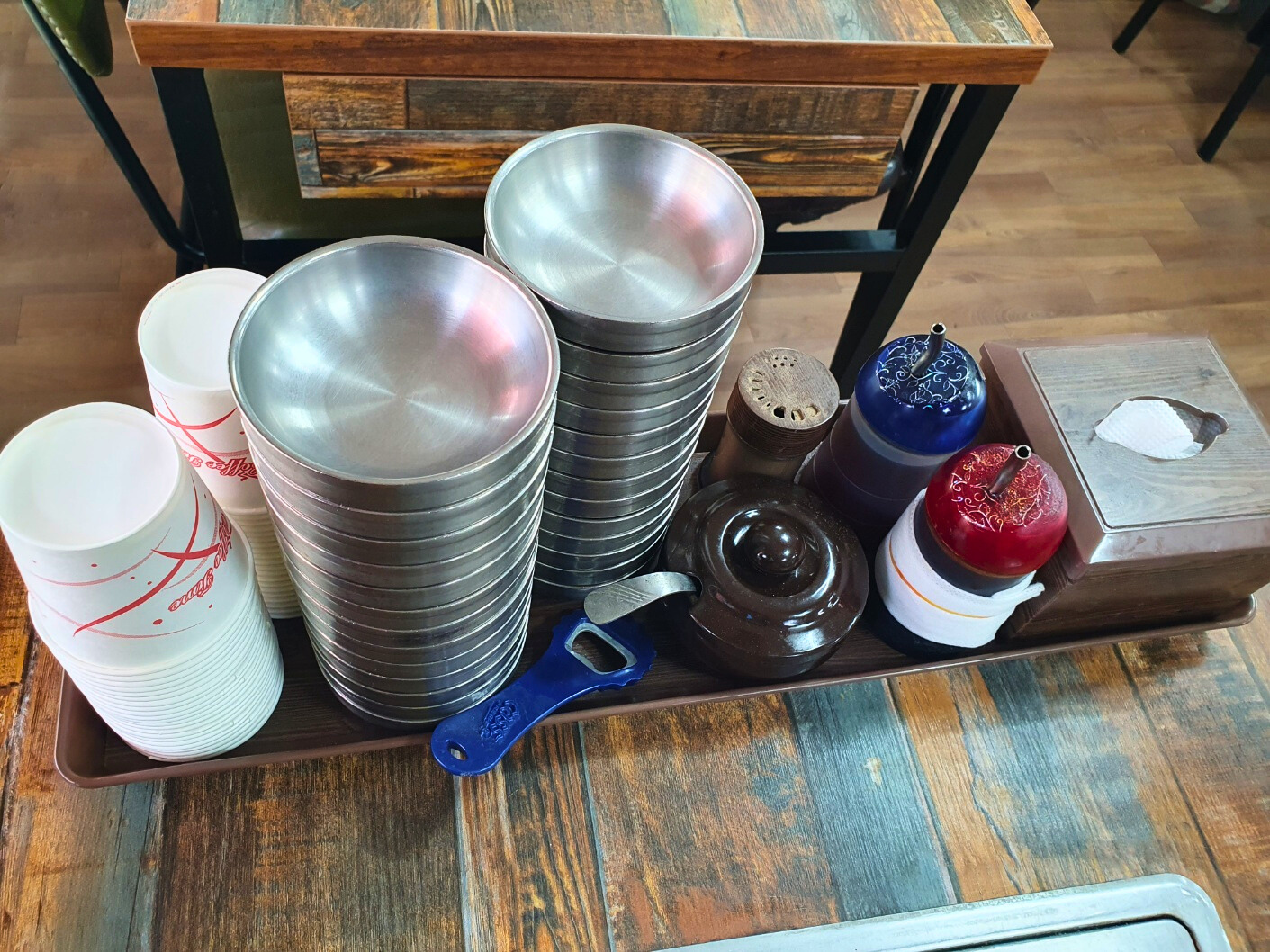 고추기름과 후추 등이 구비되어 있습니다.