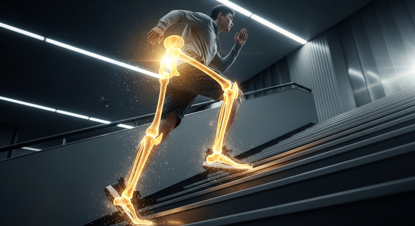 • 체중 부하 운동: 계단을 오를 때 발바닥이 지면을 강하게 딛는 동작은 뼈세포에 물리적 압박을 줍니다.
