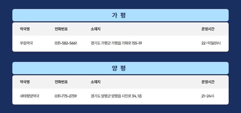야간 심야에도 경기도 공공심야약국이 문 엽니다(가평,양평,여주,이천)