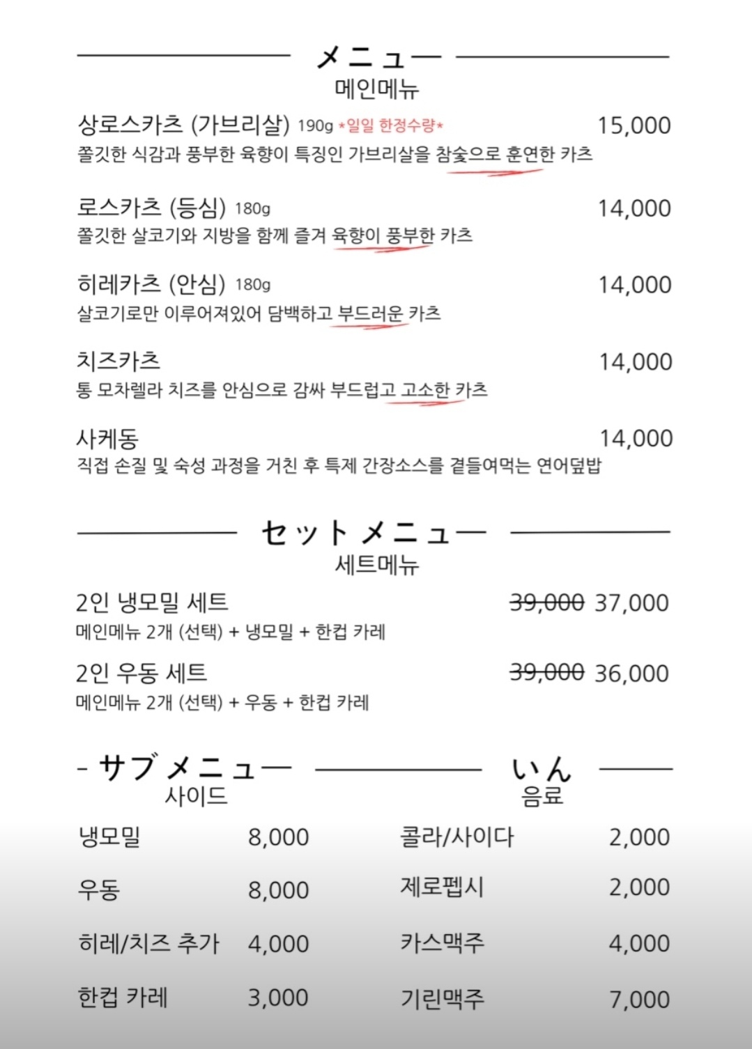 "상로스카츠"는 한정수량으로