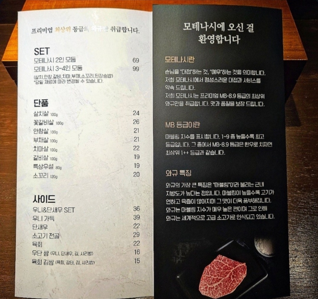 최상급 와규만을 취급하여 맛과 품질을 보장하는 것이